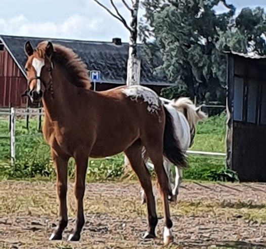 Han opfører sig eksemplarisk på fold og i stald. Jeg forventer han når et slut mål på ca 133 cm som hans halv broder: hingsten Pit Stop.